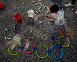 From the beginning, I wanted the child soldiers represented in overlapping ranks, with colouring that would look like a flag. I started with a single image and trimmed out all the background. Overlapping was much harder than I expected, especially since I wanted the central child soldier in each rank to be in front of those to each side, as you can see. There was a lot of positioning by pixel coordinates, then grouping, copying and pasting in new positions. The colour bands are rectangles, sized by pixel dimensions and partly transparent. I also checked to make sure that the colours I had chosen did not match any existing flag, because it’s not about any specific conflict.