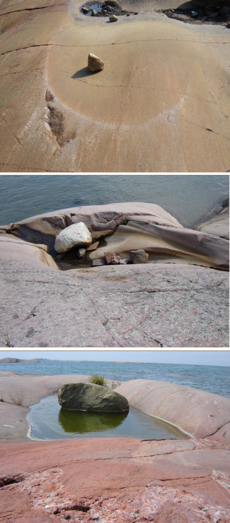 submerged in pools, cupped in other stones.