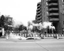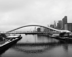 These images were taken in the course of two walks near and along Toronto’s waterfront. It was December 2021, in the midst of wave 4 of the pandemic. I chose to shoot in and for black and white images (or monochrome as the kids say…) with the camera custom-set for high contrast. What was behind my choices? A combination of the lighting, the weather and, of course, the pandemic.